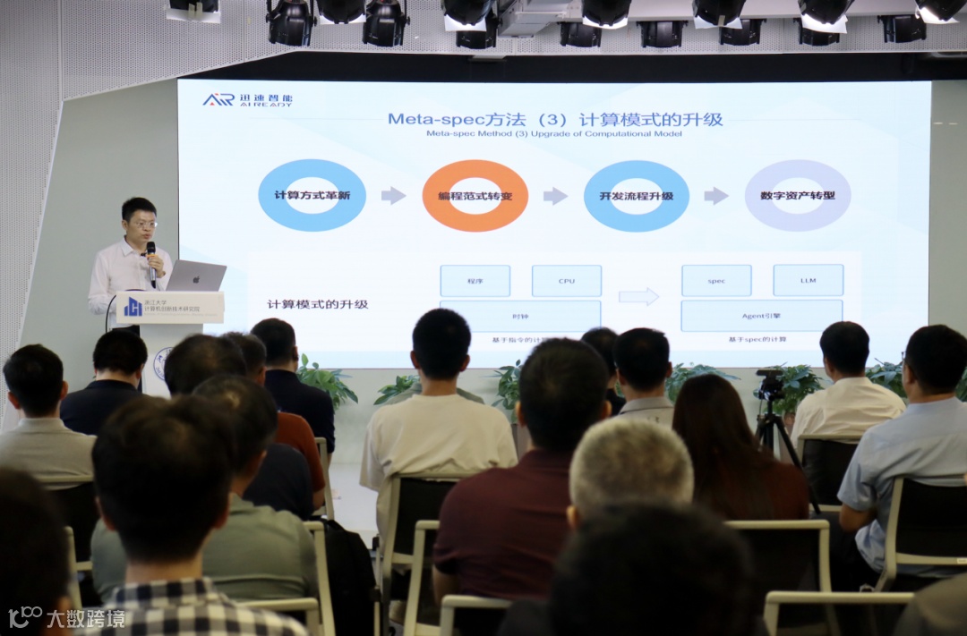 杭州迅速智能CEO熊继斌以《Meta-Spec——基于领域大模型的规格化编程》为主题,提出传统软件开发依赖多角色协同,而AI时代应转向以“Spec”为中心的开发模式。他介绍了基于Meta-Spec方法论的AI研发产品系列,实现从碎片化需求到用户故事、原型设计、代码生成、测试用例的全流程自动化,让“Spec”成为可复用的数字资产。
