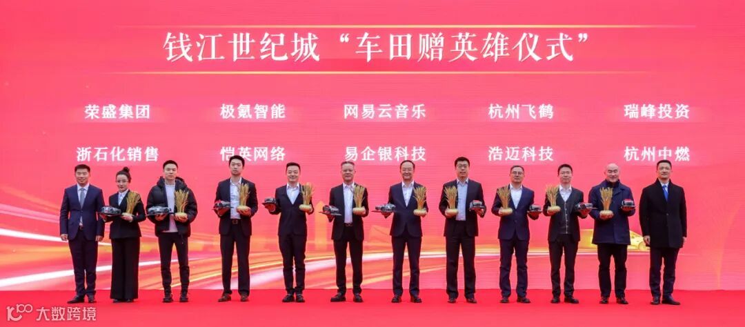 现场,钱江世纪城“优秀贡献”企业代表分别获赠极氪新能源车一辆、50亩“世纪田园”1年的收益权。祝愿“英雄”企业在世纪城这片希望的田野上,牢牢扎根、结出硕果。