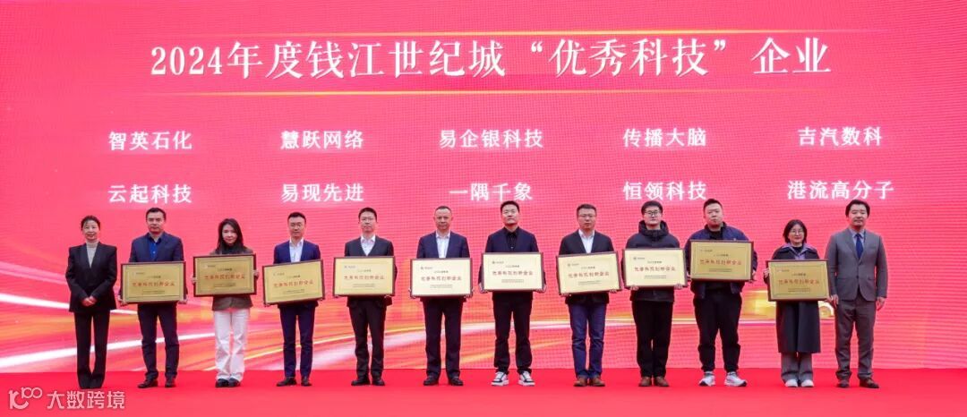 小镇企业智英石化、慧跃网络、吉汽数科、云起科技、易现先进、一隅千象、恒领科技、港流高分子获评2024年度钱江世纪城“优秀科技”企业。