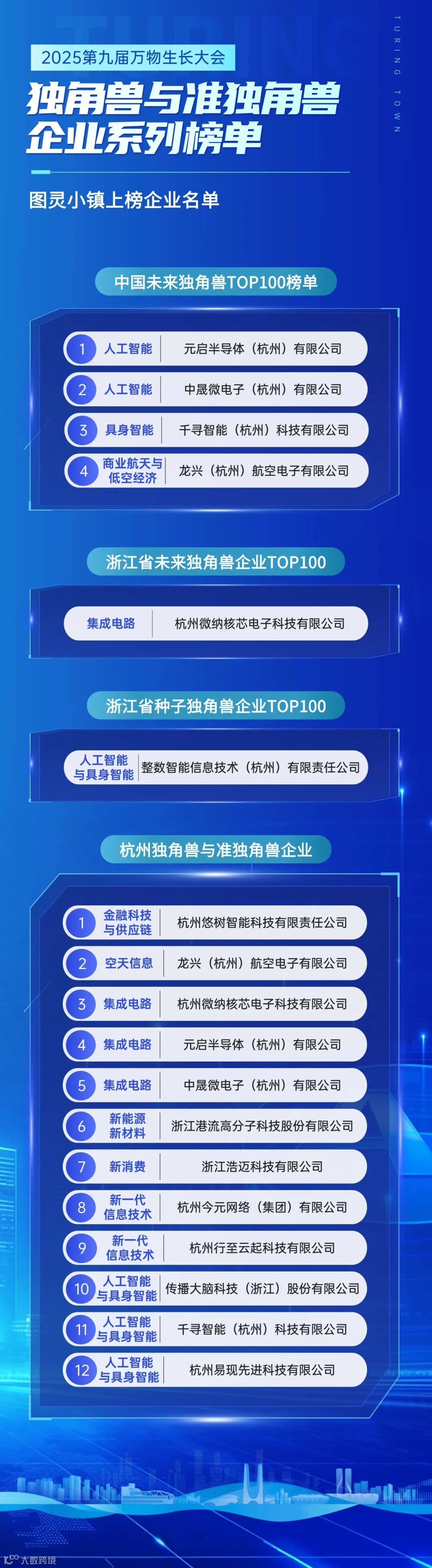 近日,第九届万物生长大会如期举行。会议相继发布了2025“中国未来独角兽TOP100”“浙江省未来独角兽企业TOP100”“浙江省种子独角兽企业TOP100”“杭州独角兽与准独角兽企业”等系列榜单,小镇分别有4家、1家、1家、12家企业荣耀登榜。