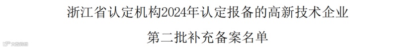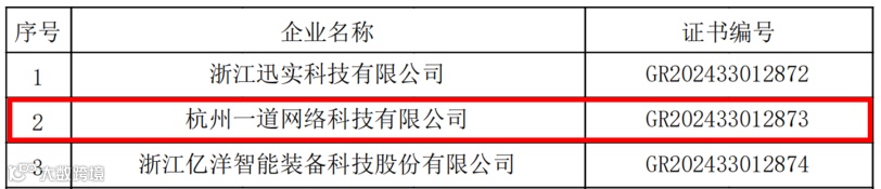 日前,《浙江省认定机构2024年认定报备的高新技术企业第二批补充备案名单》发布,小镇企业杭州一道网络科技有限公司榜上有名。