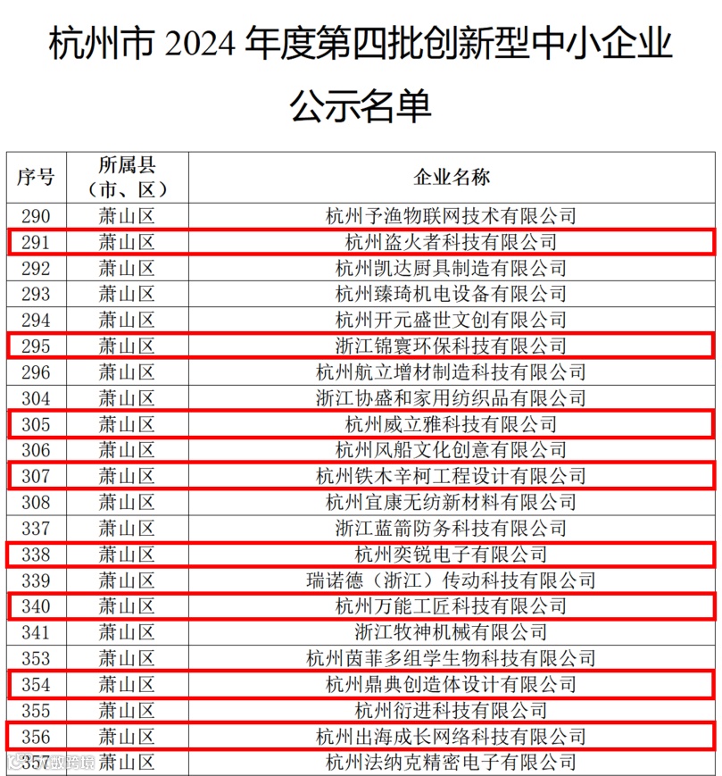近期,杭州市经济和信息化局公示“杭州市2024年度第四批创新型中小企业”名单,盗火者科技、锦寰环保科技等8家小镇企业榜上有名。