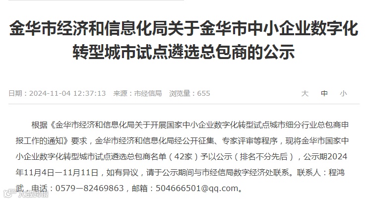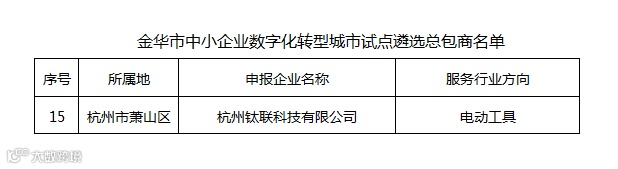 日前,金华市经济和信息化局发布了《金华市经济和信息化局关于金华市中小企业数字化转型城市试点遴选总包商的公示》,经自主申报、严格筛选与专家评审,钛联科技脱颖而出,成功入选名单。这份荣誉不仅体现了钛联科技在数字化转型领域的深耕与创新,也标志其在助力企业实现转型升级和可持续发展的工作中得到了认可。