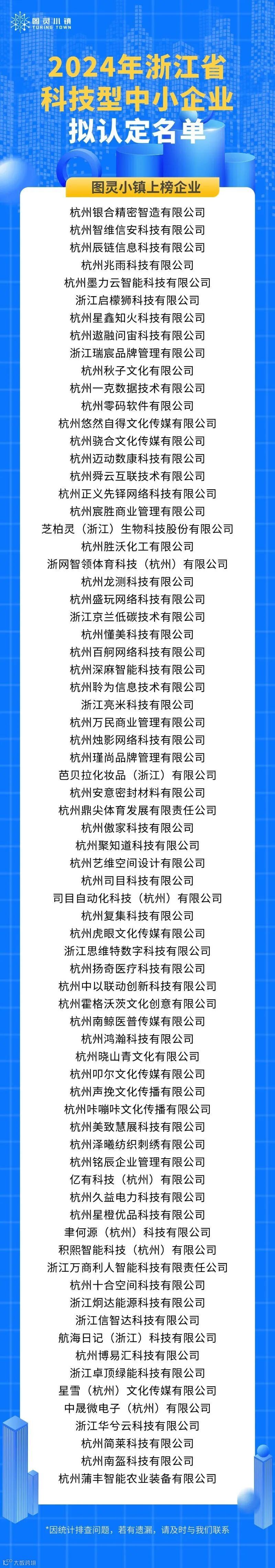 日前,杭州市科学技术局公示了《杭州市2024年浙江省科技型中小企业拟认定名单》,小镇共有73家企业上榜。