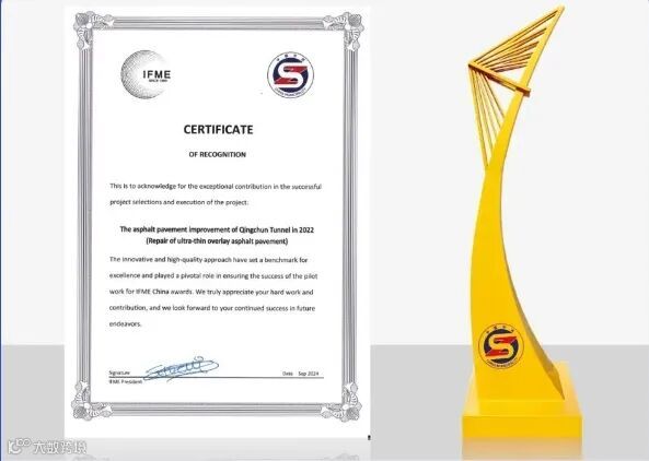 此外,北大信研院旗下创业服务品牌——杭州北大创业园,其入驻企业华运通达研发的“GTTECH高韧超薄磨耗层技术体系”助力庆春隧道沥青路面改善(超薄罩面沥青路面修复)养护类项目,获评国际市政工程协会颁发的2024年国际市政工程协会(中国奖)试点项目。