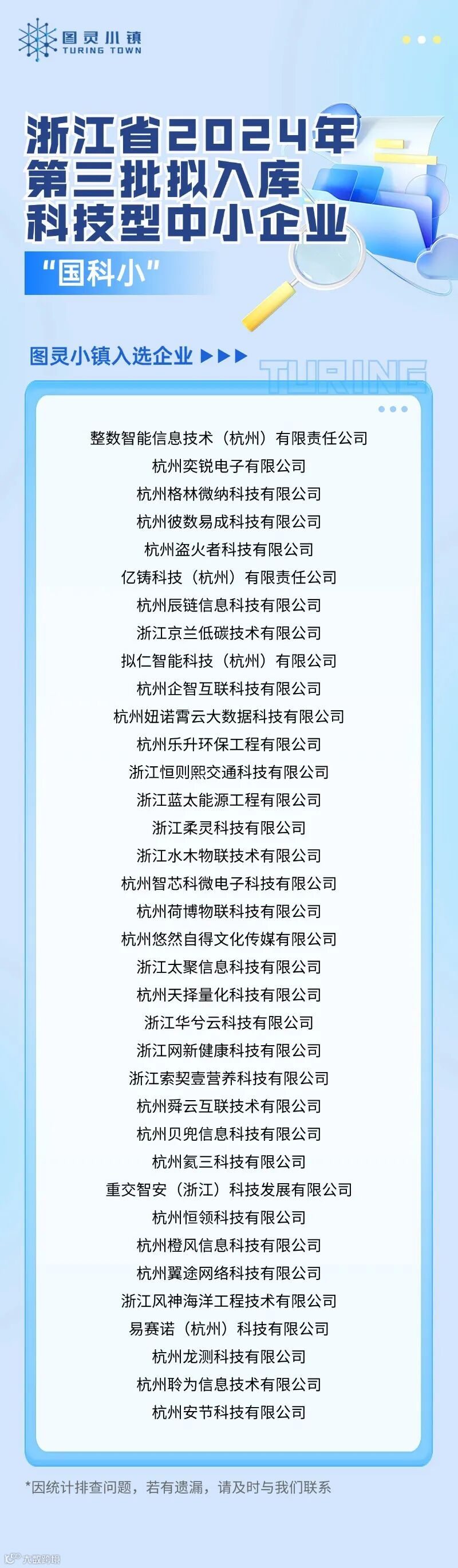 浙江省经济和信息化厅公布了浙江省2024年第三批拟入库科技型中小企业名单,图灵小镇36家企业成功入选。