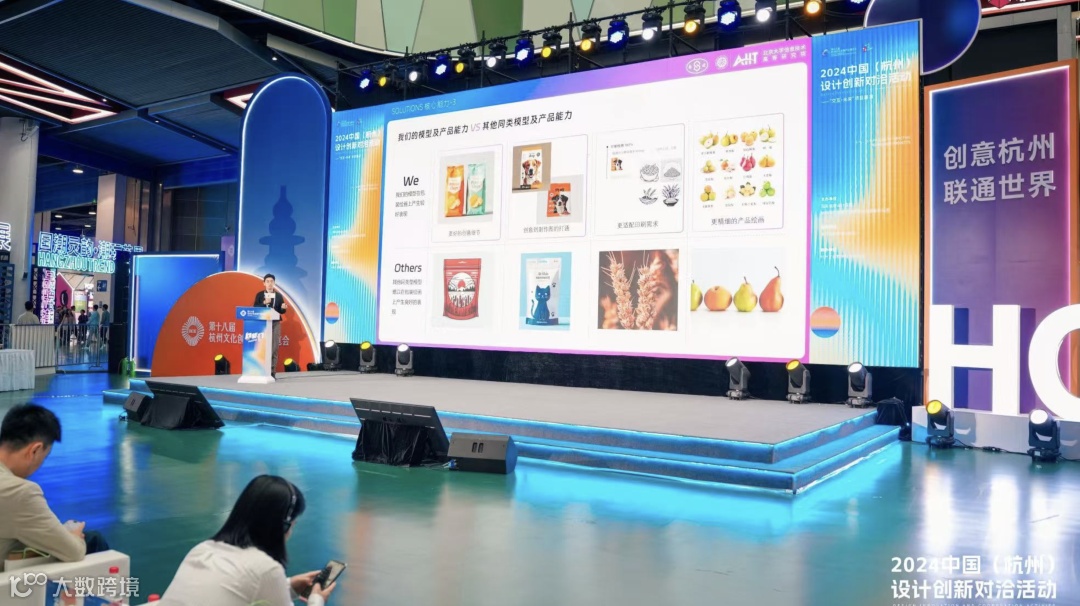 此外,在第十八届杭州文博会召开期间,北大信研院人工智能包装设计联合实验室受邀参加2024中国(杭州)设计创新对洽活动文博会专场,分享团队自主研发的行业内首个AIGC大模型应用——AI小方的全新版本,受到现场观众的一致好评。