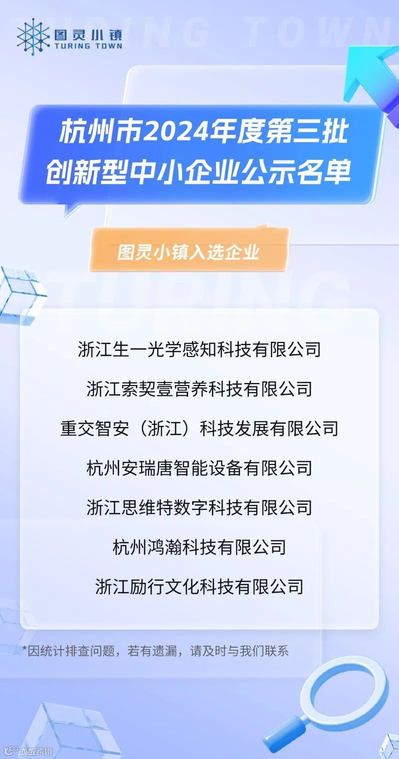杭州市经济和信息化局发布了杭州市2024年度第三批创新型中小企业的公示名单,图灵小镇共7家企业入选。