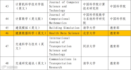 北大信研院支持的“Health Data Science”入选中国科技期刊卓越行动计划