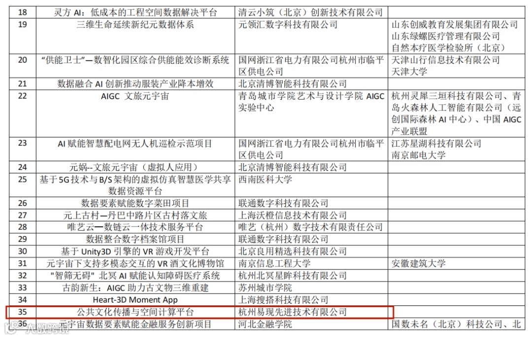 近日,由国家数据局牵头多部委举办的“数据要素 X”全国总决赛推荐资格的第三方赛——2024元宇宙“数据要素”创新应用大赛公布了入围名单,杭州易现先进科技有限公司在192个申报项目中脱颖而出,成功入围。