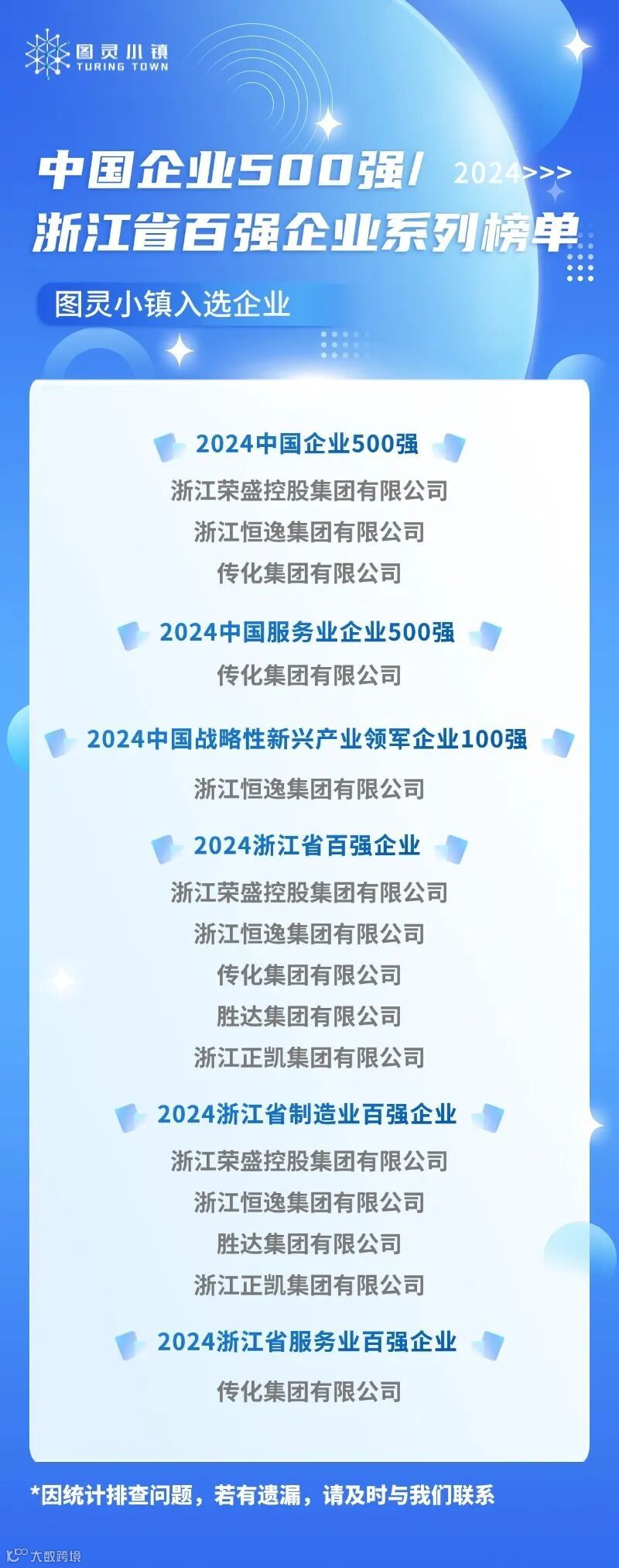 近日,2024中国企业500强、2024浙江省百强企业等榜单相继发布。其中,图灵小镇5家企业实力登榜,分别是浙江荣盛控股集团有限公司、浙江恒逸集团有限公司、传化集团有限公司、胜达集团有限公司、浙江正凯集团有限公司。