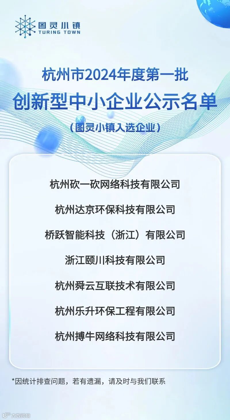 日前,杭州市经济和信息化局发布了《杭州市2024年度第一批创新型中小企业公示名单》。其中,图灵小镇共有7家企业入选,快来一起看看吧~