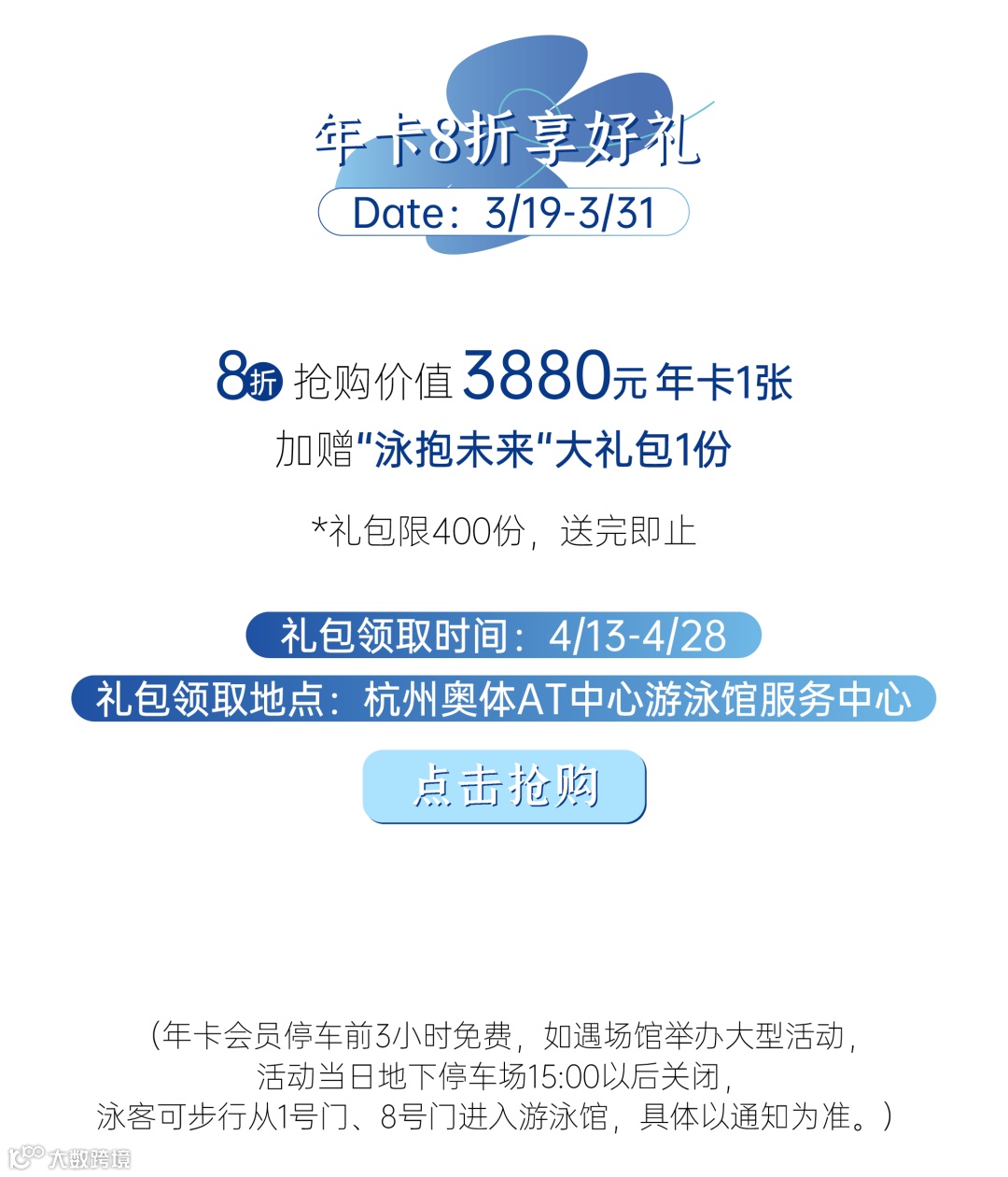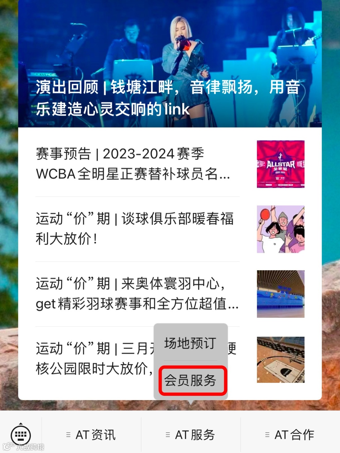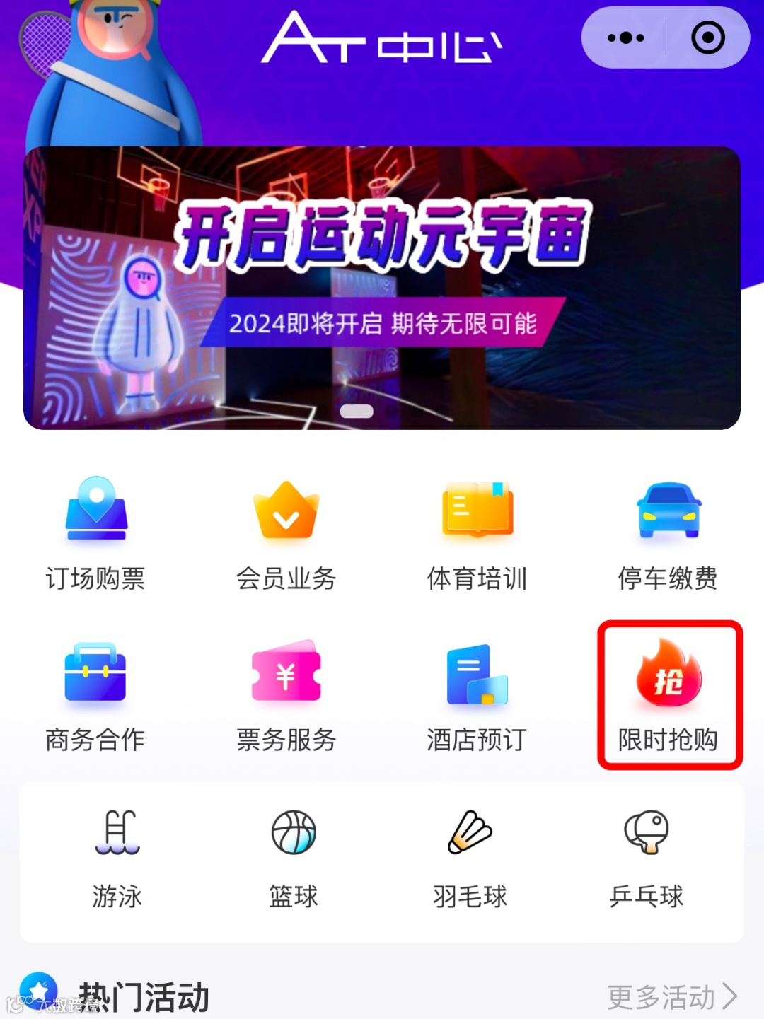 市民朋友可关注“杭州奥体AT中心”公众号,点击公众号下方“AT服务”子菜单,选择“会员服务”,即可进入小程序查看限时抢购!