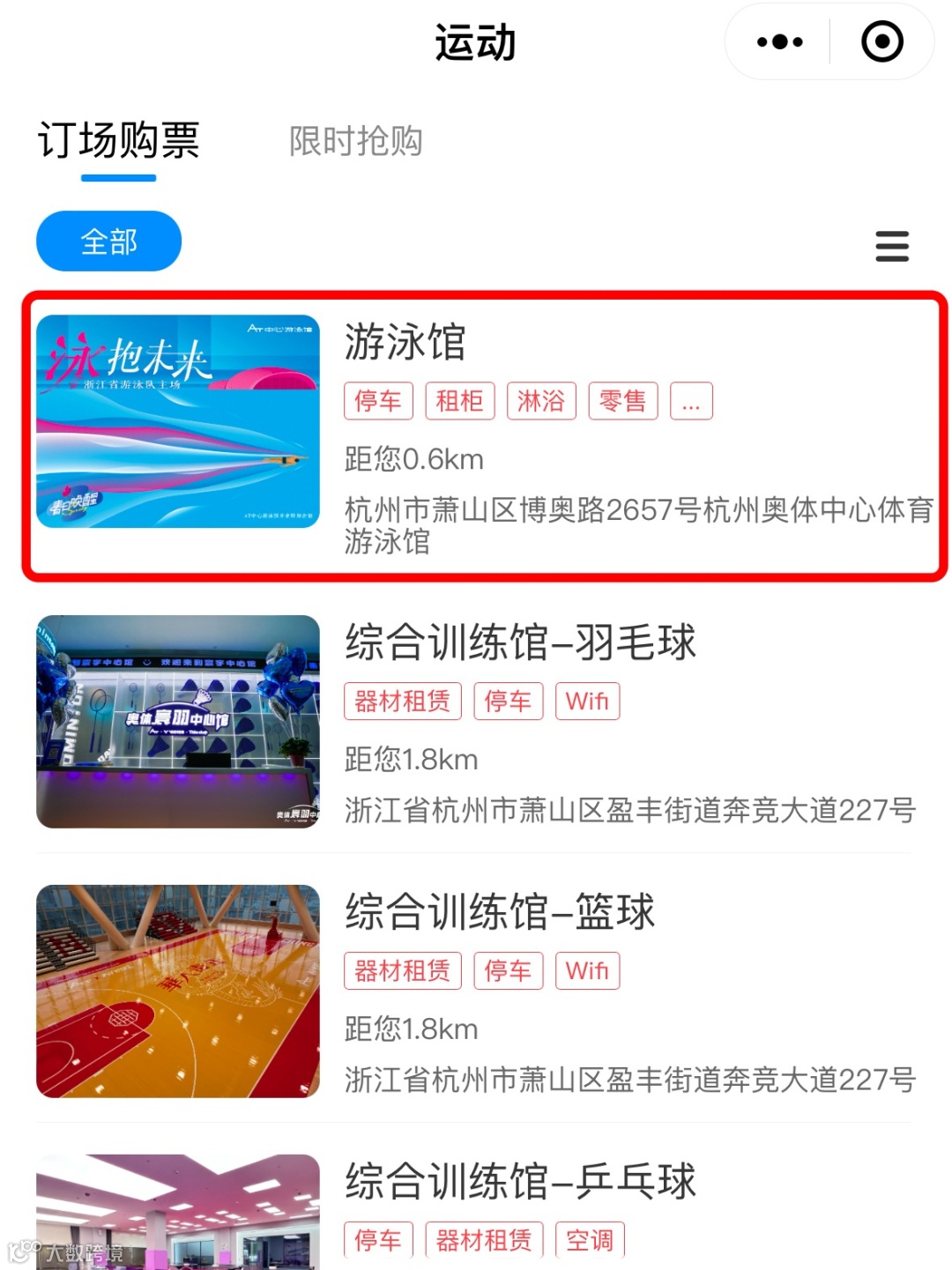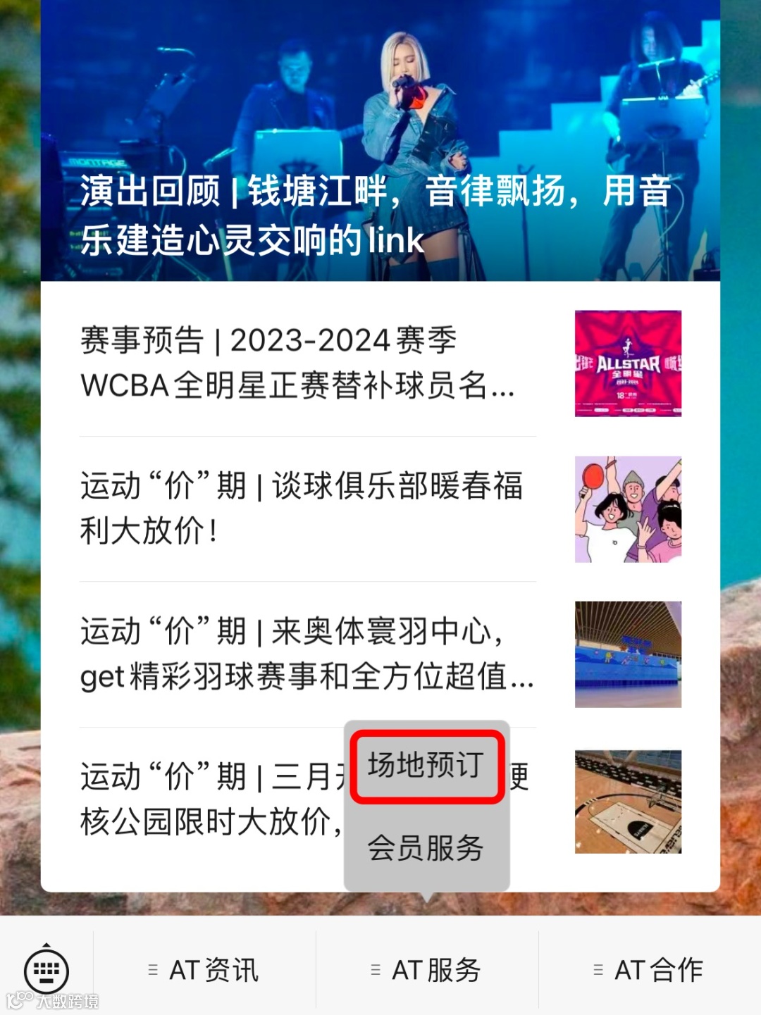 市民朋友可以关注“杭州奥体AT中心”公众号,点击公众号下方“AT服务”子菜单,选择“场地预订”,即可进入小程序查看场地详情、抢购8折年卡!