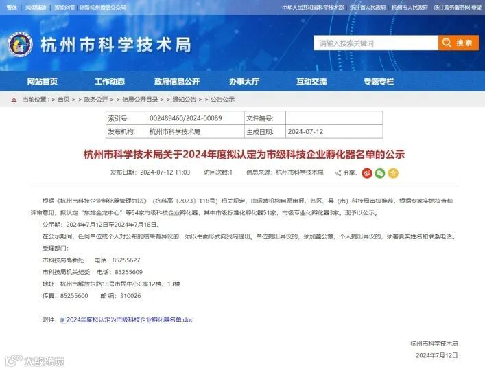 杭州市科学技术局发布2024年度拟认定为市级科技企业孵化器的公示名单。其中,由小镇企业杭州保亿奥体置业有限公司运营的“保亿·奥邸国际科创中心”,被拟认定为市级标准化孵化器。