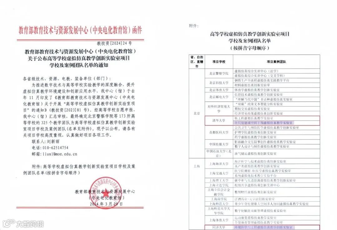 近日,一隅千象助力清华大学“全尺度建成空间干预虚拟仿真教学实验室”,同济大学“环境科学与工程虚拟仿真教学创新实验室”成功入选高等学校虚拟仿真教学创新实验室项目。