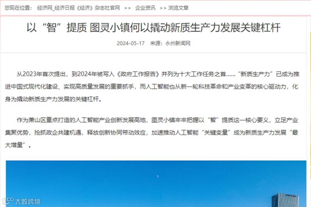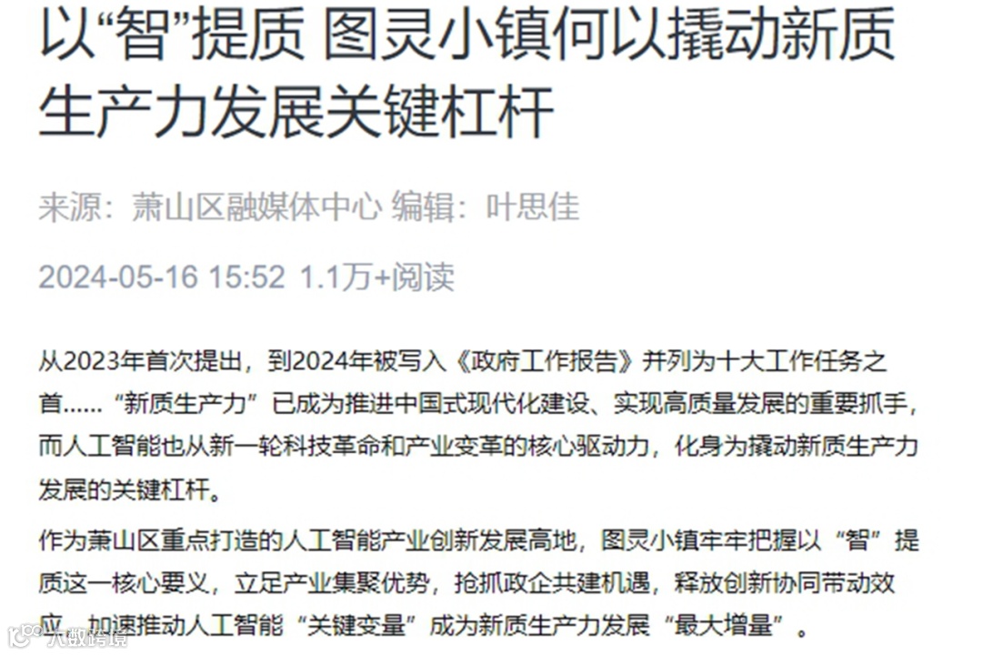 当前,“新质生产力”已成为各地谋篇布局的高频词,也是推动区域经济高质量发展的硬支撑。近日,中国日报网、经济网、浙江日报、杭州日报、萧山发布等多个国家省市区级主流媒体聚焦报道图灵小镇以“智”提质,撬动新质生产力发展关键杠杆。(点击了解详情)