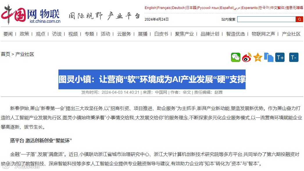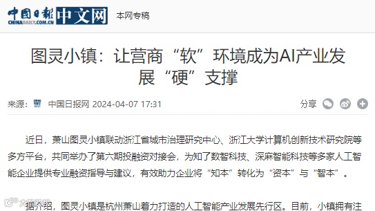 近日,央视新闻、中国网、中国日报网、杭州日报等多个国家级、市级主流媒体聚焦报道图灵小镇,为小镇以一流营商环境助推人工智能企业攀高逐新,构筑AI产业创新生态链,打造AI产业从“单打独斗”到“组团打拼”的“图灵样板”点赞。(点击了解详情)