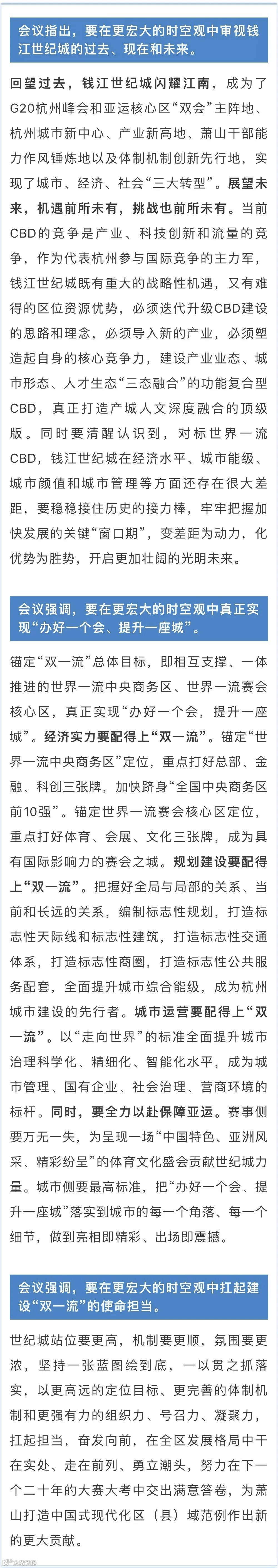 会上,钱江世纪城党工委书记秦剑云从世纪城20年奋进历程、当下要打赢的“三场仗”、下一个20年如何高质量发展等方面进行了汇报,党工委副书记、管委会主任鲍燚婷汇报未来总部基地启动区产业规划、空间规划情况。