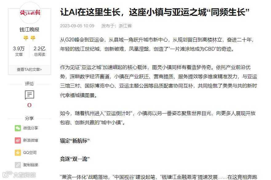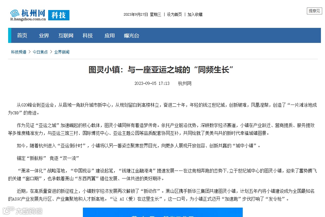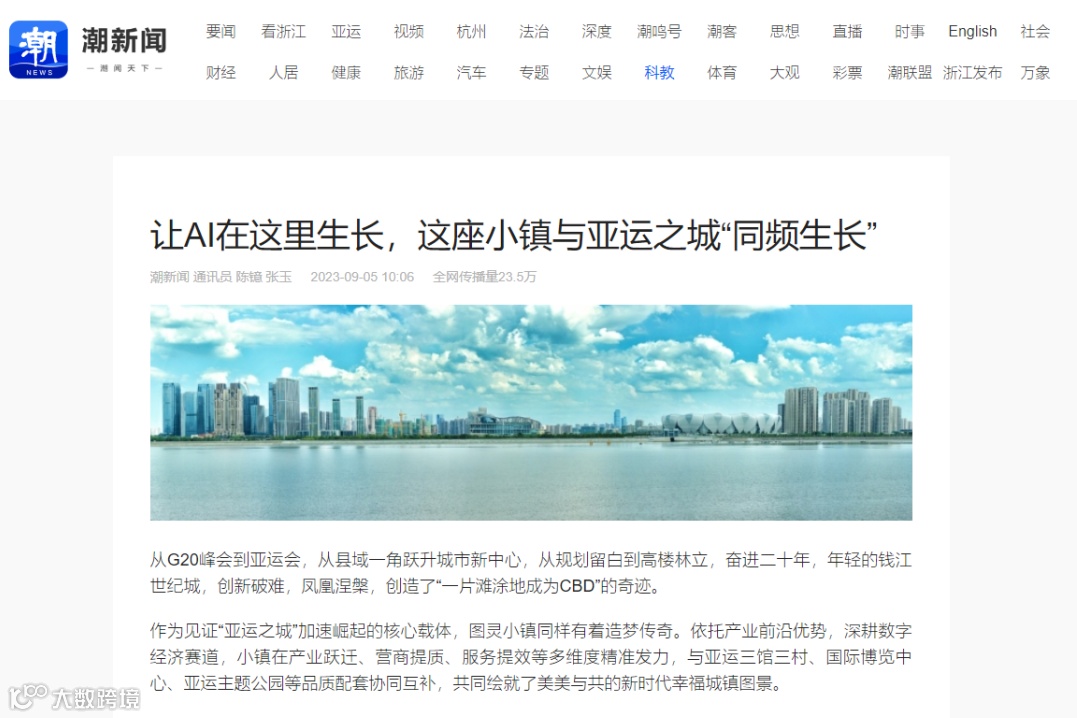 近日,浙江新闻(潮新闻)、钱江晚报、杭州网等省市级主流媒体纷纷聚焦图灵小镇,刊登了题为《让AI在这里生长,这座小镇与亚运之城“同频生长” 》、《图灵小镇:与一座亚运之城的“同频生长”》的新闻报道,点赞小镇以数字科技赋能智慧亚运与区域经济高质量发展。