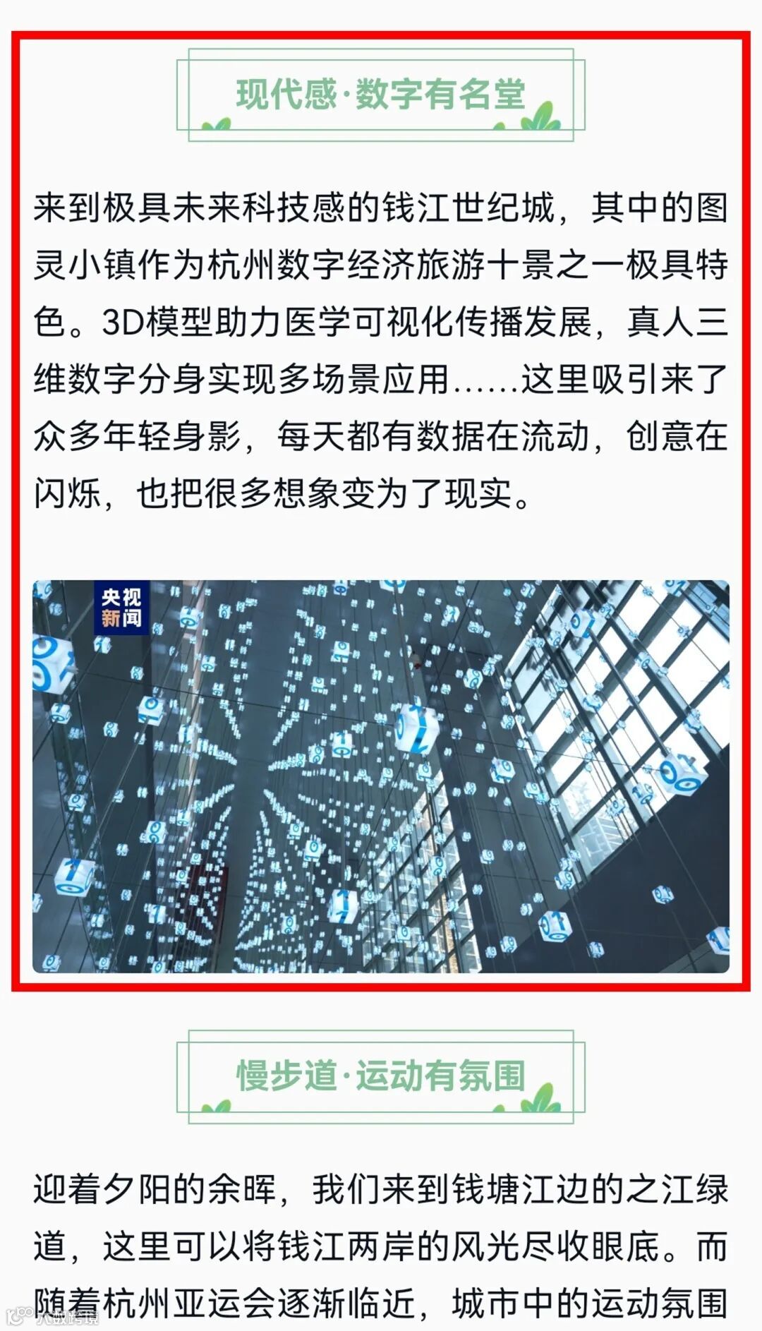 8月24日,央视CCTV13新闻频道推出杭州第19届亚运会倒计时30天特别节目《新时代 新亚运》。令人骄傲的是,图灵小镇在专题系列报道《行走亚运之城:不止西湖 杭州值得你漫步》中闪亮登场!