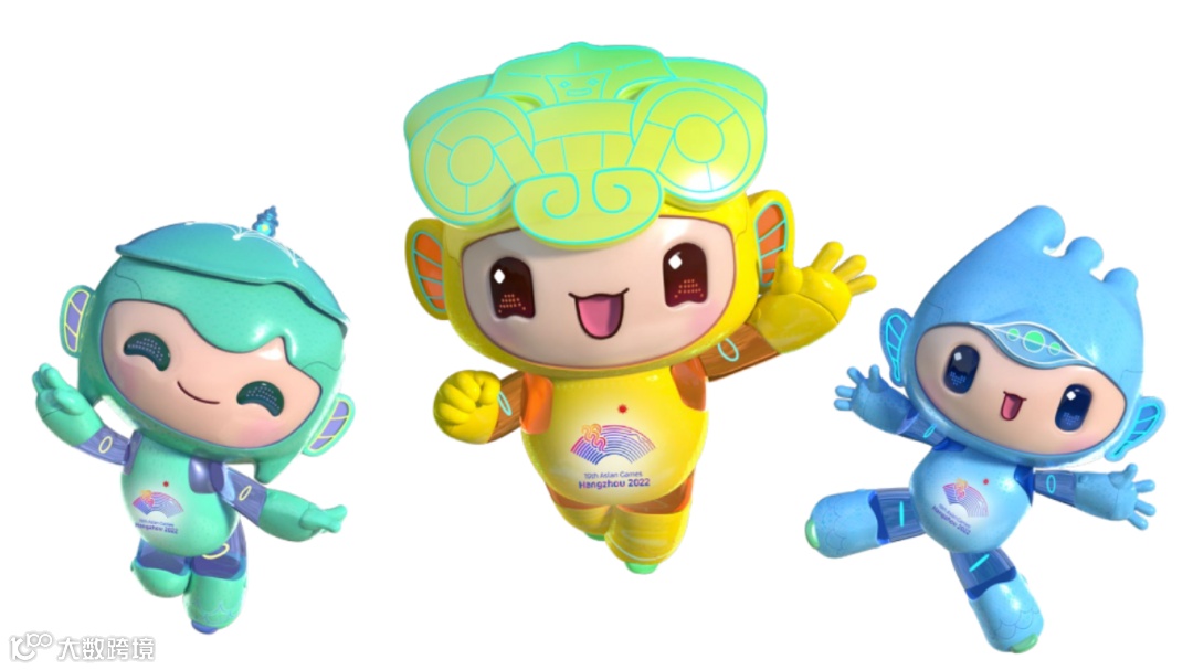 亚运会吉祥物琮琮、莲莲和宸宸出现在楼宇之上,充满动势的色块与运动员竞技时刻接连出现,亚运倒计时信息点亮我们对杭州亚运会的热切期待。