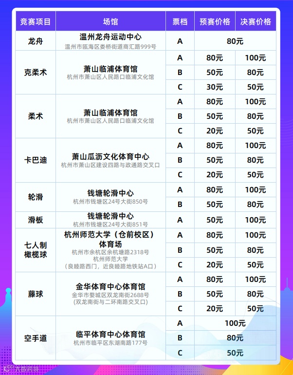 1张有效证件只能购买同一售票场次1张门票。杭州亚运会体育比赛热门项目门票每场次每个订单限购4张,其余项目每场次每个订单限购6张。