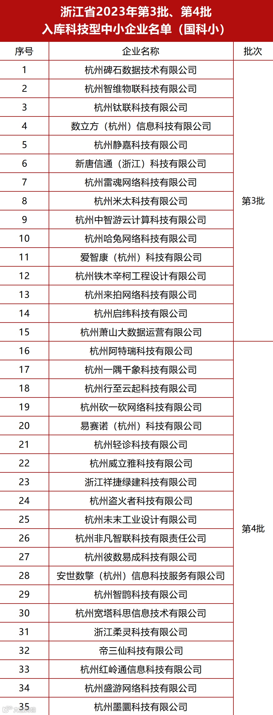 近日,浙江省科技厅发布了关于浙江省2023年第3批、第4批入库科技型中小企业(国科小)的公告名单。其中,图灵小镇35家企业上榜。今年,小镇已累计培育国家级科技型中小企业80家。