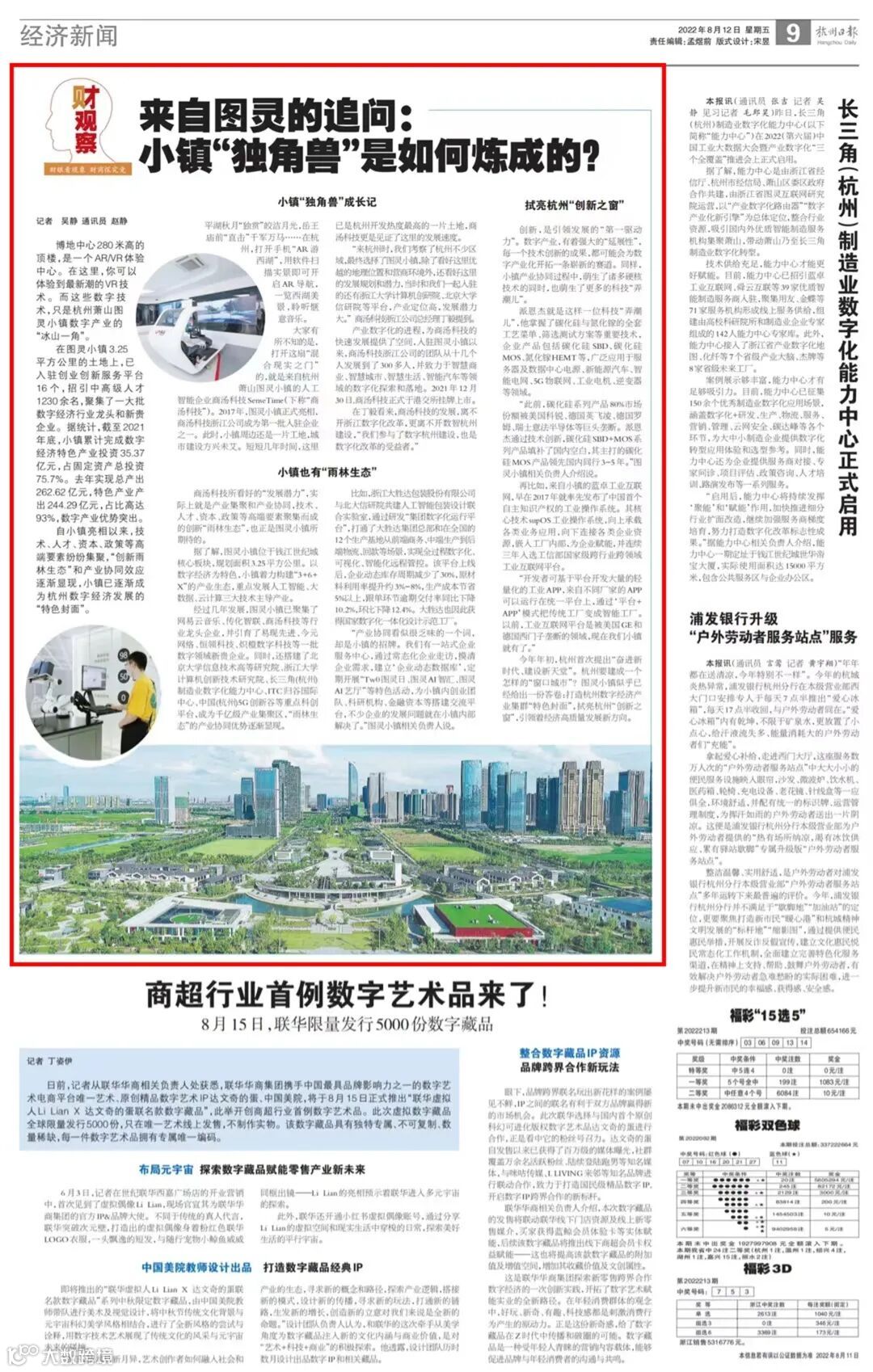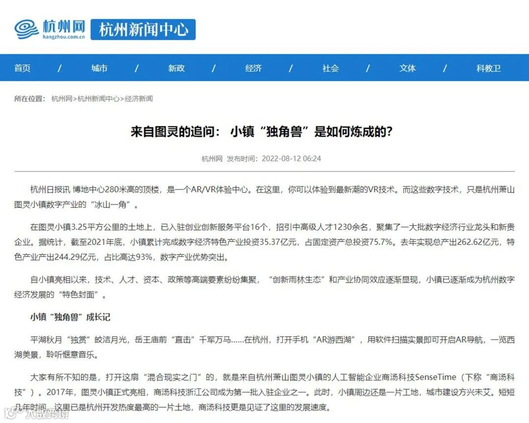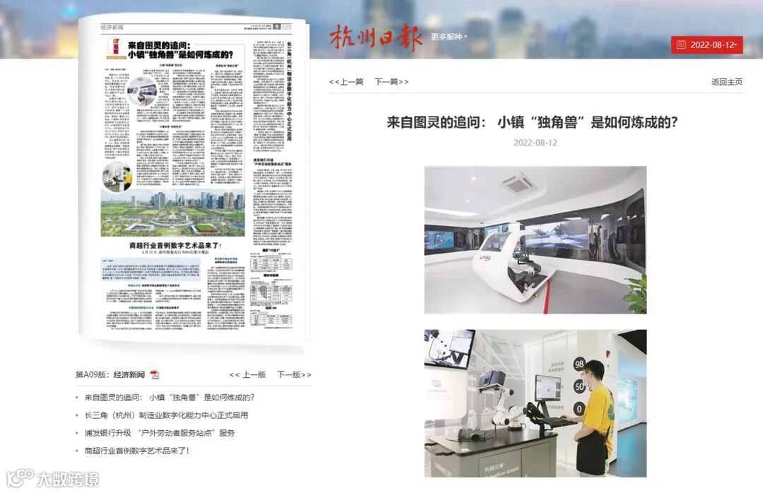 8月12日,《杭州日报》围绕图灵小镇数字经济行业龙头和新贵企业开展专题报道,让更多人走进小镇、了解小镇。