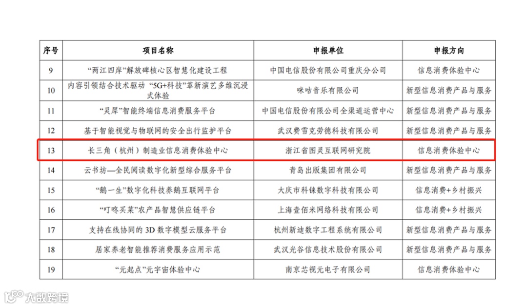近日,《工业和信息化部办公厅关于组织开展2022年新型信息消费示范项目申报工作的通知》(工信厅信发函〔2022〕75号),经企业申报、地方推荐、专家评审、网上公示等程序,2022年新型信息消费示范项目认定名单公布,图灵小镇长三角(杭州)制造业信息消费体验中心成功入选。