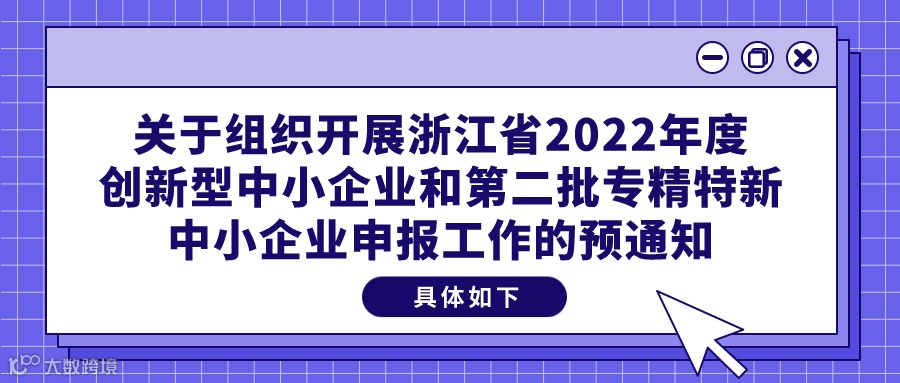 根据工业和信息化部《优质中小企业梯度培育管理暂行办法》(工信部企业〔2022〕63号,以下简称《暂行办法》)和《浙江省经济和信息化厅关于印发浙江省优质中小企业梯度培育管理实施细则(暂行)的通知》(浙经信企业〔2022〕197号,以下简称《实施细则》)相关规定,现将本辖区组织开展2022年度浙江省创新型中小企业和专精特新中小企业申报工作,有关事项通知如下: