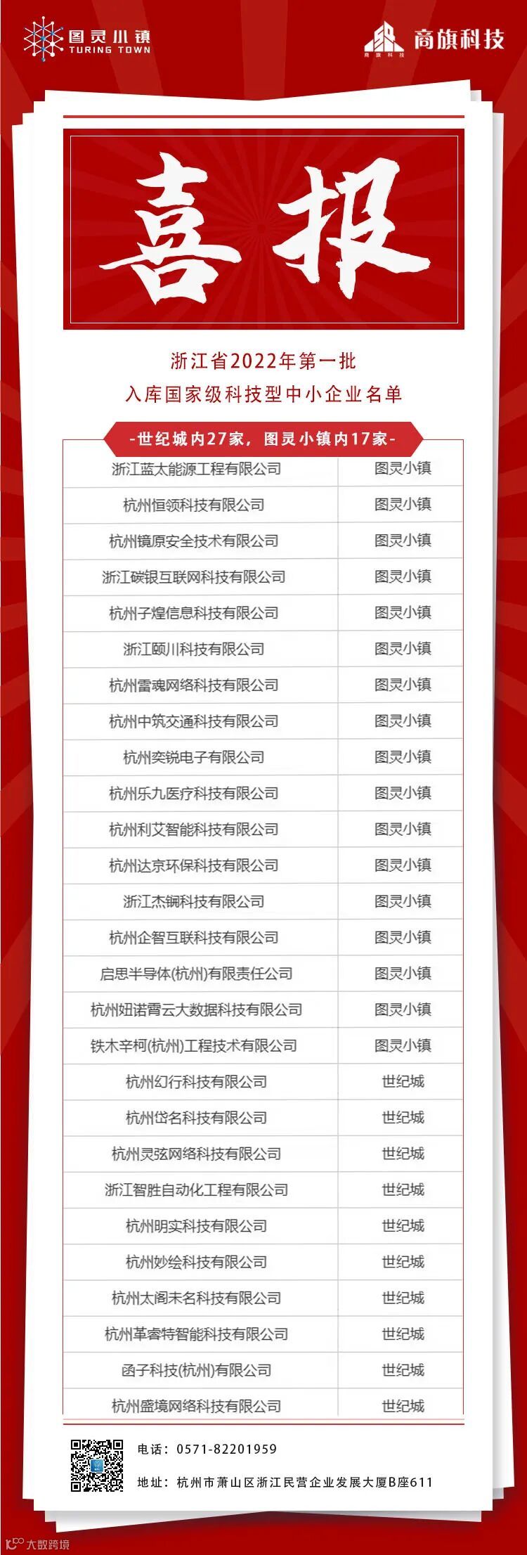 近日,省科技厅公布浙江省2022年第一批入库国家级科技型中小企业名单,萧山区138家企业上榜,其中钱江世纪城区域企业27家,图灵小镇内企业17家。