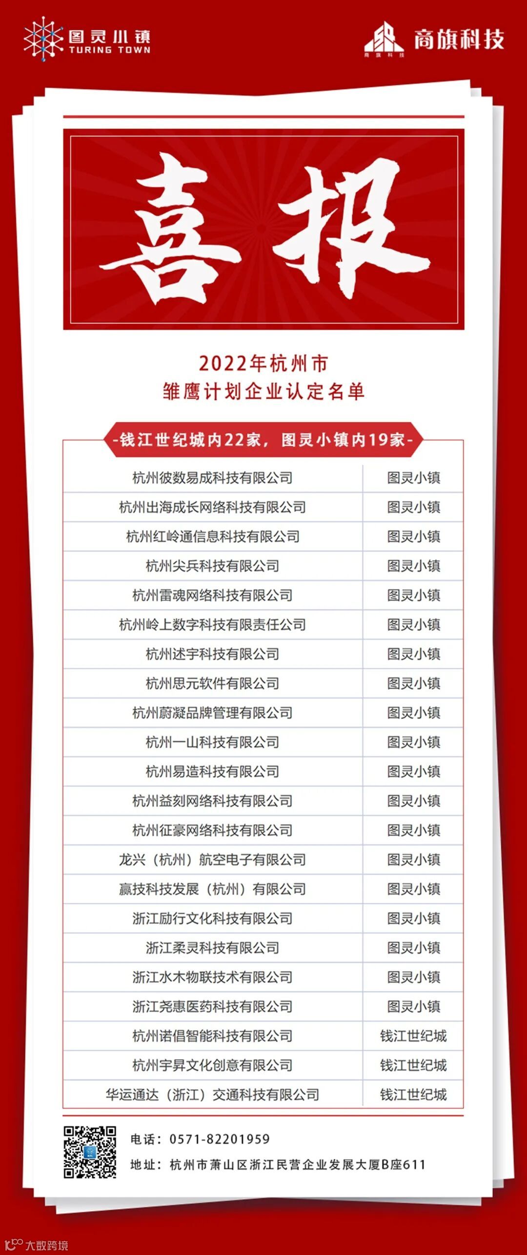 近日,杭州市科技局公布了2022年杭州市“雏鹰计划”企业认定名单,萧山区共102家企业入选,其中钱江世纪城22家,图灵小镇内企业19家。
