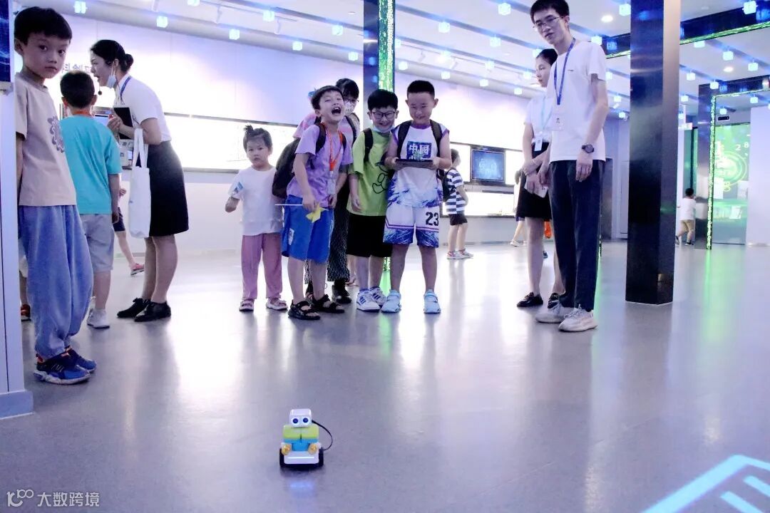 走进位于展厅二楼的图灵之门,小朋友们认真观看了智能管家、智能识别、运动健康等未来智慧生活场景,大家聚在大屏幕前,好奇地探索着数智世界的奥秘。编程启蒙机器人、智能识别机器人等数智产品进一步点燃了小朋友们对科技的热情。“无人驾驶和智能识别技术真酷!”“机器人动起来啦!编程好难但也挺有趣的。”“我有三块‘识别’地图,谁还没有我可以分给你玩。”参观过程中,小朋友们充分发挥了学习观察力、动手创造力及协调配合力,共同领略科技赋能的真正力量,以沉浸式体验在心间播撒下“科技强国”的种子。