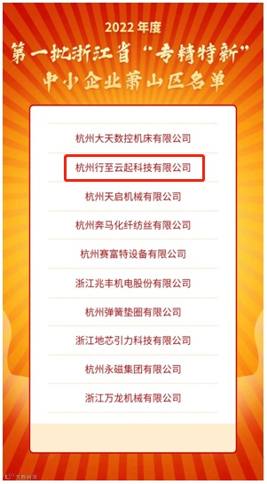 近日,浙江省经信厅公布了2022年度第一批浙江省“专精特新”中小企业名单,图灵小镇企业杭州行至云起科技有限公司成功上榜。