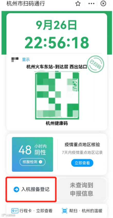 (5)扫“场所码”进入“入杭报备登记”,正在杭州火车东站等场所逐步推广。