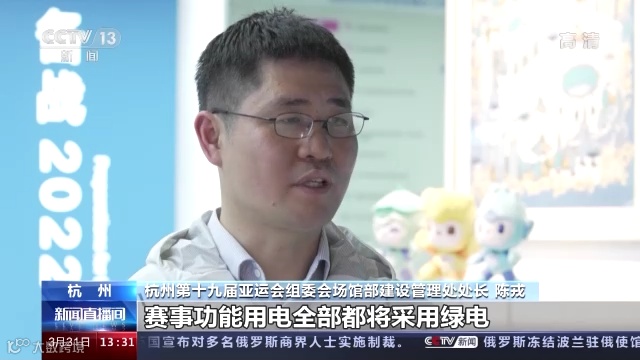 杭州第十九届亚运会组委会场馆部建设管理处处长 陈戎:从当前到亚残运会结束,所有亚运场馆赛事用电全部都是绿电。目前,亚运绿电交易成交电量已达2.2亿度,可减排二氧化碳11.54万吨。