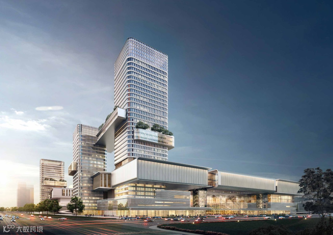 作为杭州国际博览中心(一期)的姊妹篇,国博二期集会议展览、商业、商务、酒店等功能于一体,将重点打造都市型会展,并强化与杭州国际博览中心的形态呼应与功能互补。比如,项目通过单元模块化的组合最大化满足展览功能,大尺度的悬挑顶冠,既满足高规格会议的仪式感,又与一期的悬挑形成相融的关系,同时项目还设置双层空中连廊,8米标高的人行通廊和16米标高的货运通道将一二期建筑融为一体。
