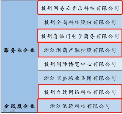 本次评选,图灵小镇共有5家企业榜上有名,其中服务业企业4家,分别是杭州网易云音乐科技有限公司、杭州喜临门电子商务有限公司、浙江浙商产融控股有限公司、杭州九迁网络科技有限公司;金凤凰企业1家,为浙江浩迈科技有限公司。