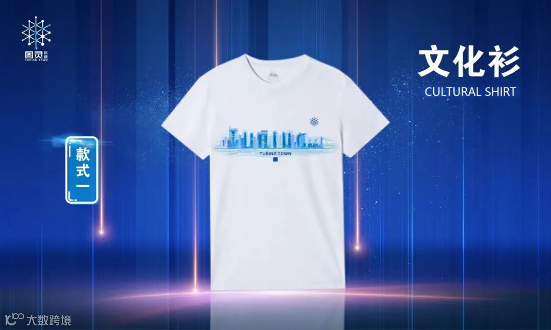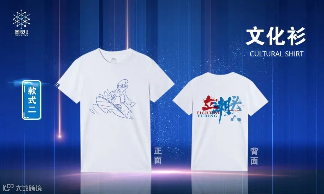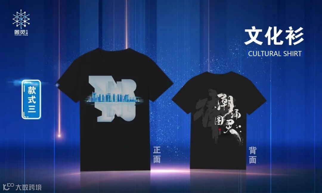 朋克款:在潮涌款的基础上进行升级和延展,突出时尚、未来,把图灵字母的放大变形,形成二次元透视空间,如江水倒映图灵,如产业升级之风穿梭小镇,打造聚焦小镇和预见未来的视觉体验。