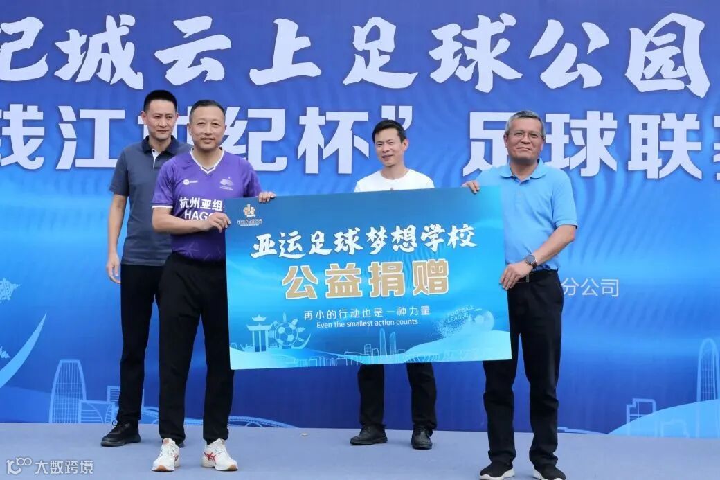 仪式上,钱江世纪城云上足球公园向“亚运梦想足球学校”公益项目捐赠1万元梦想基金,以公益力量点亮孩子们的足球梦想,助推青少年足球发展。