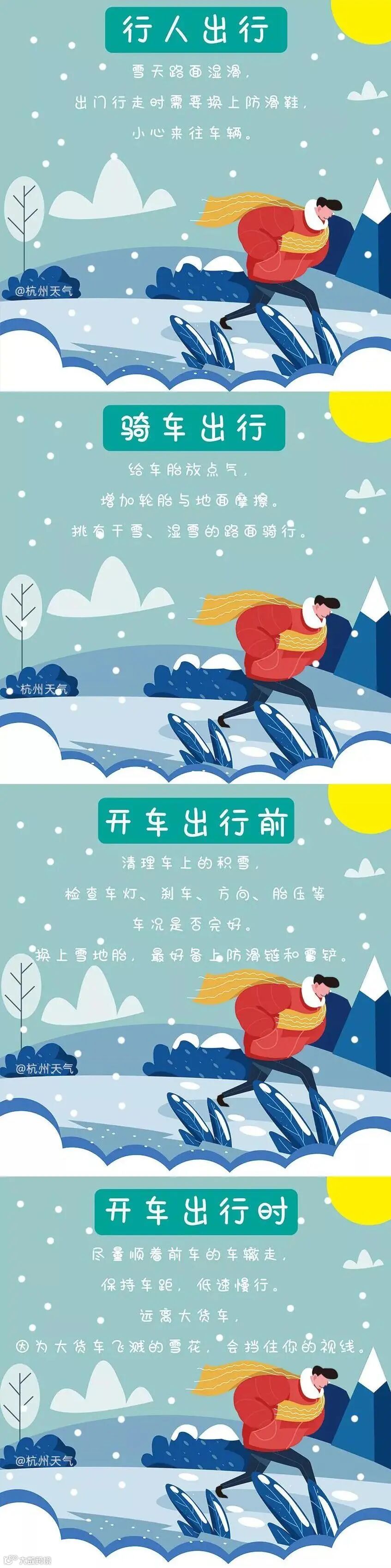本次降雪范围大,雨雪过程结束以后,明天还将有冰冻,镇民们在上下班通勤路途中,要注意出行安全,减速慢行。同时要注意保暖,小心冻成“杭州限定冰墩墩”~