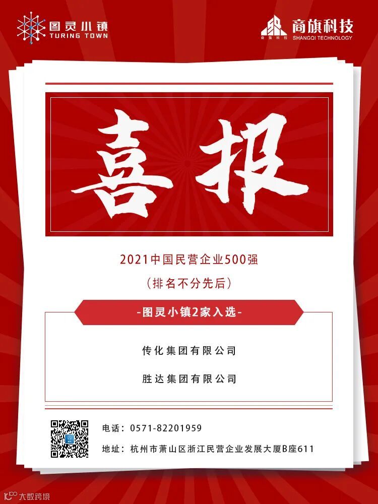9月25日,由全国工商联主办的“2021中国民营企业500强”峰会于在湖南长沙召开,萧山区9家企业入围2021中国民营企业500强,图灵小镇企业传化集团有限公司、胜达集团有限公司入围。