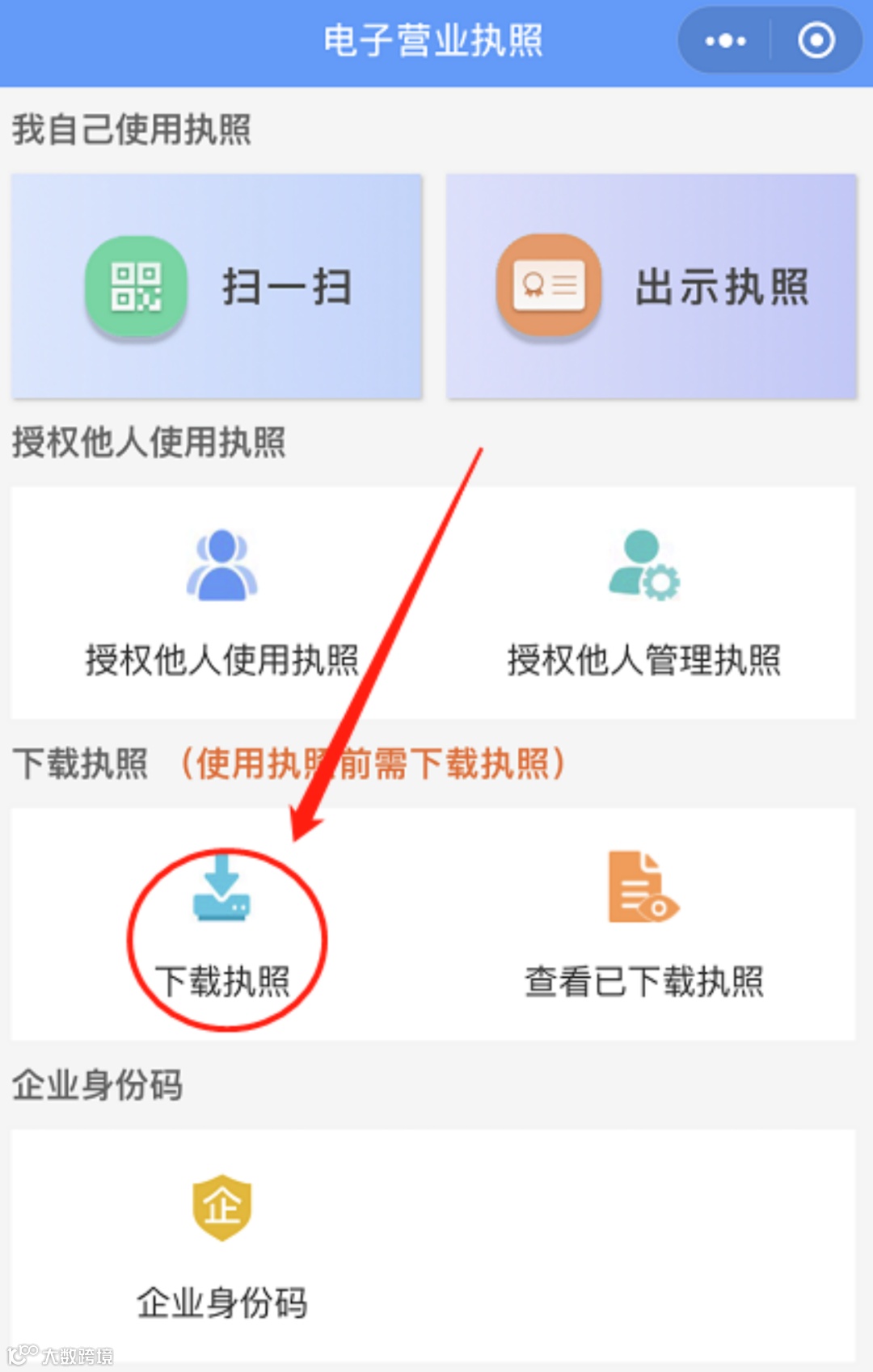 进入小程序后,点击下载执照。