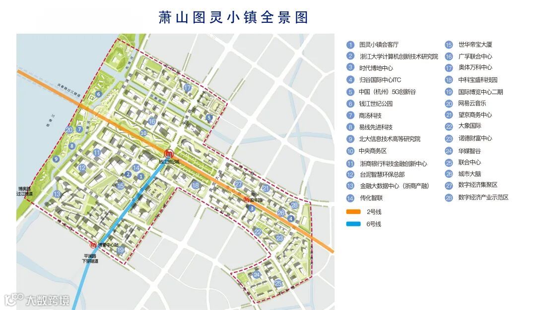 图灵小镇取名源自于计算机、人工智能之父——艾伦•图灵,寓意图灵小镇是围绕计算机技术和人工智能方向的产业集聚区。小镇位于钱江世纪城最核心最优势的区块,地处钱塘江南岸,与钱江新城拥江而立,处于杭州新城市 CBD、钱塘江一线江景地带,是杭州市未来城市新中心。图灵小镇于 2017 年首次亮相,2018 年被列入省级特色小镇第三批培育名单, 2019 年被列入省级特色小镇第五批创建名单,2020 年入选“杭州数字经济旅游十景”。