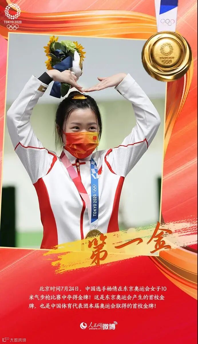•北京时间7月24日,中国选手杨倩在东京奥运会女子10米气步枪比赛中夺得金牌!这是东京奥运会产生的首枚金牌,也是中国体育代表团本届奥运会取得的首枚金牌!