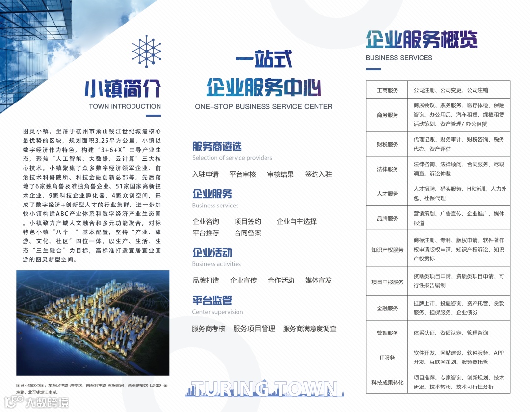 为了更精准、更高效地服务好小镇内数量庞大的企业,促进企业健康、持续、稳定地发展,强化小镇数字经济产业链,在钱江世纪城管委会的指导下,图灵小镇携手萧山国际人才服务中心,设立图灵小镇一站式企业服务中心,想企业所想、急企业所急、解企业所困,为小镇企业及人才提供“一揽子服务”。