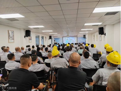 会上,安全员对本次活动主题及意义进行了宣讲,并通过一系列安全事故案例视频向大家警示在叉车操作、吊装作业、高空作业、机械操作等过程中时刻以安全第一,严格遵守操作规程,做到不伤害自己、不伤害他人、不被他人伤害。随后,安全员再次强调了“安全第一,预防为主,综合治理”的安全生产基本方针,并带领全体职工进行了安全宣誓,郑重承诺:忠诚企业,恪尽职守,珍爱生命,制造精品。