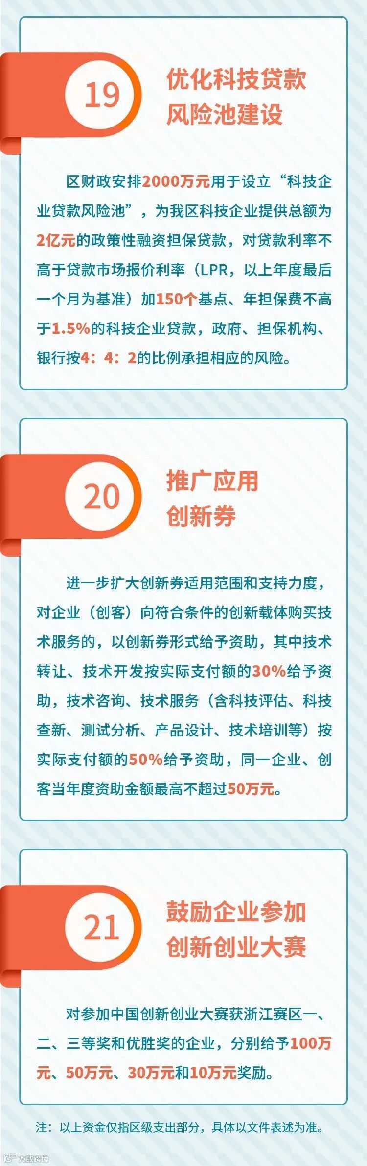 包括科技贷款、科技保险、风险池、推广应用创新券和鼓励企业参加创新创业大赛。