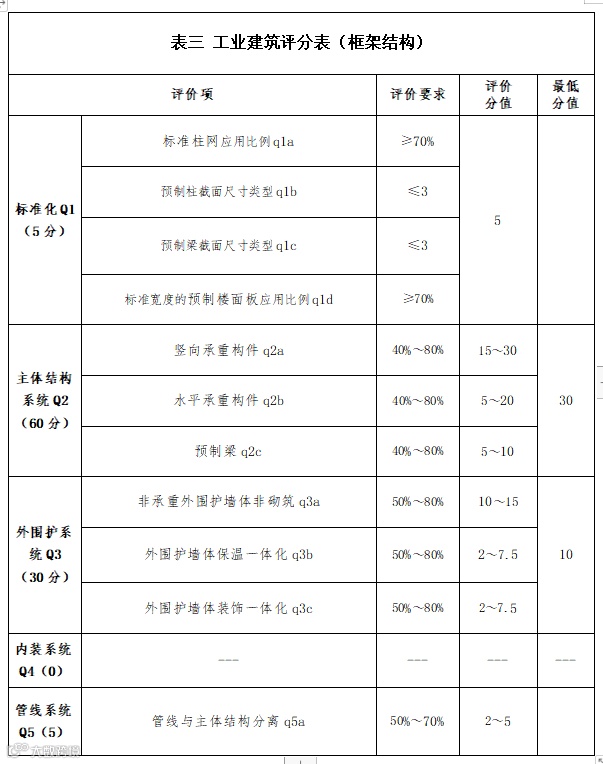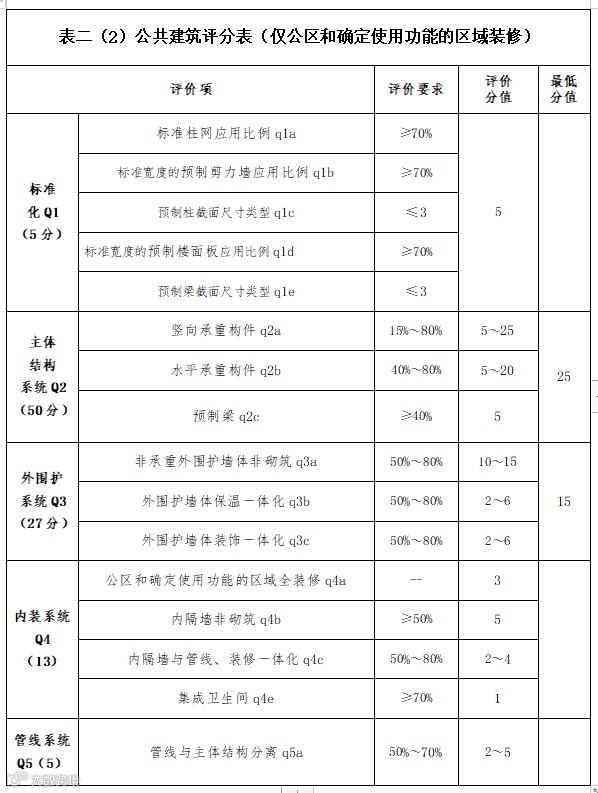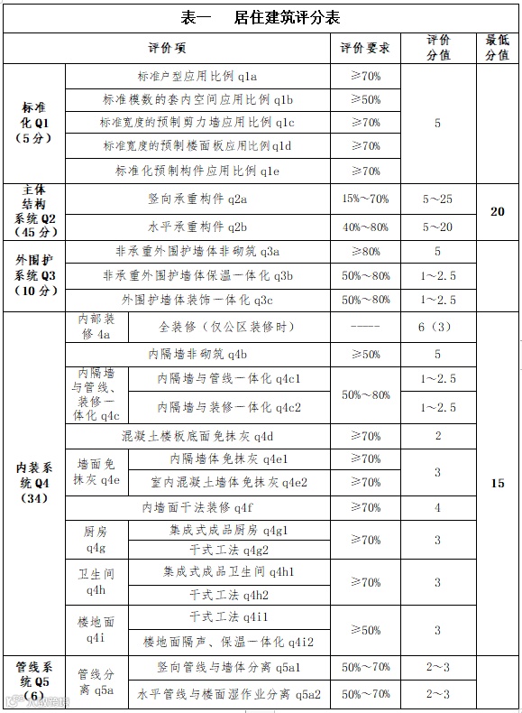 1.本细则按照居住建筑、公共建筑和工业建筑的特点分别给出评分项及评分值。(见表一、表二、表三)